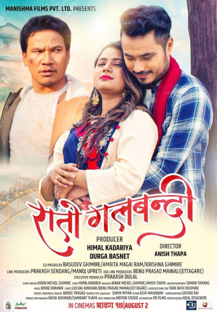 "Rato Galbandi" refers to a Nepali movie released on August 2, 2019, directed by Sunil Pandey. It features actors like Keki Adhikari, Tanka Budathoki, Sarika Ghimire, and others. The movie's soundtrack includes songs like "Mero Rato Galbandi," performed by Pratap Das and Sapana, and "Rato Galbandi" by Rajesh Payal Rai and Shreya Rai . It's a significant part of Nepali cinema, known for its cultural representation and entertainment value.